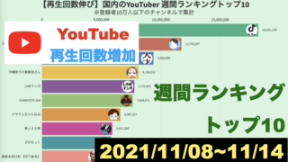 YouTube記事 【再生回数増加】国内YouTubeチャンネル週間ランキングトップ10 2021年12月6日~12月12日