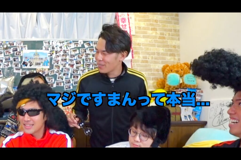 東海オンエアが到着すると、全員ヤンキーコスプレに着替えてもらい、