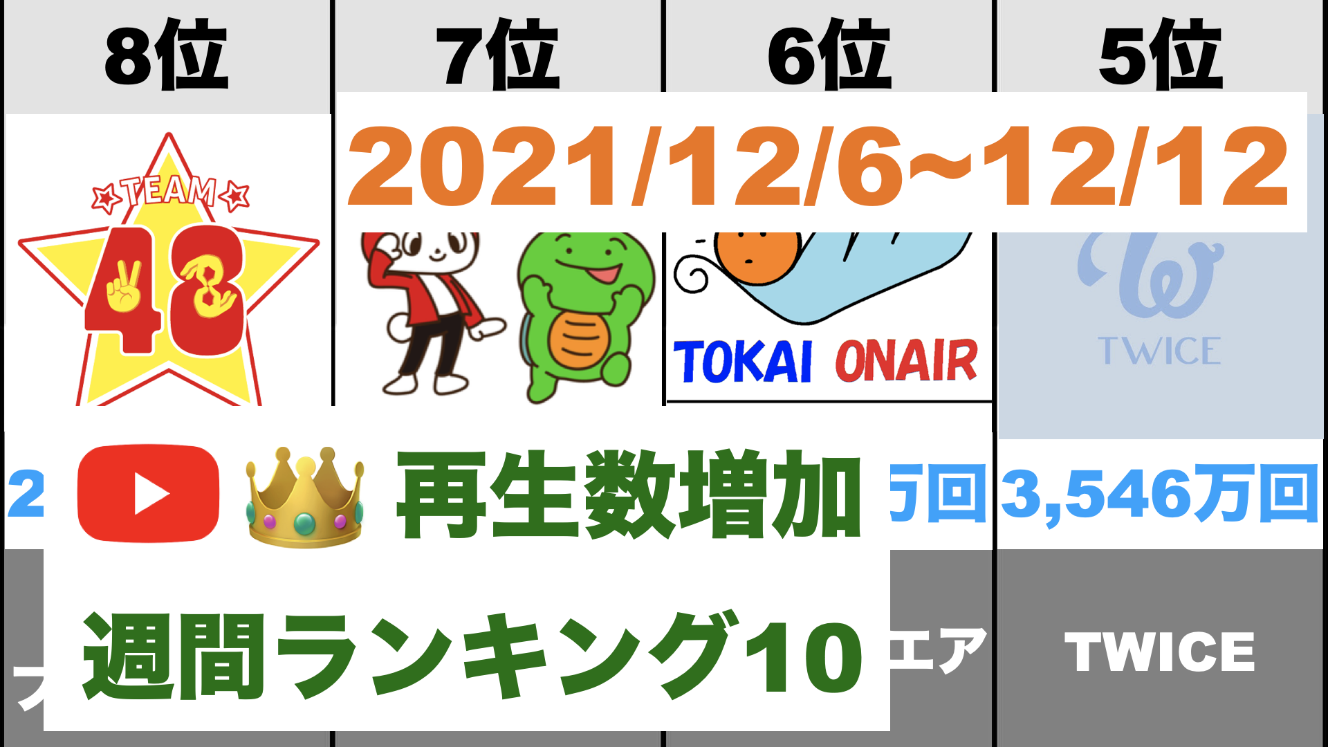 再生回数が今週(2021/12/6〜12/12)伸びたチャンネルを可視化してみました。