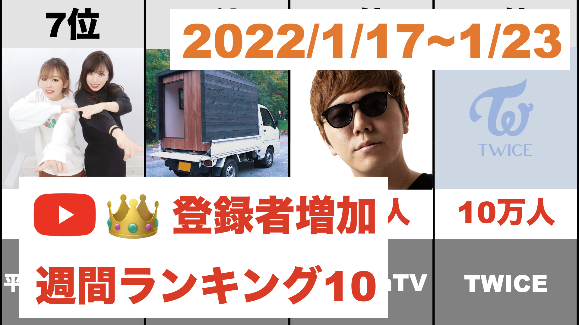登録者数が今週(2022/1/17〜2022/1/23)伸びたチャンネルを可視化してみました。